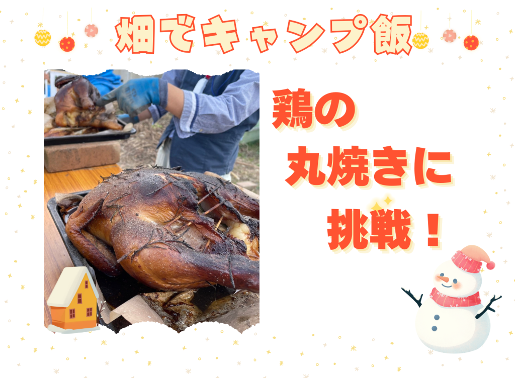 鳥の丸焼きの他、焚き火で炊くご飯(価格高騰の為、お米持参をお願いしています)、有機食材を使ったおかずを作ります!